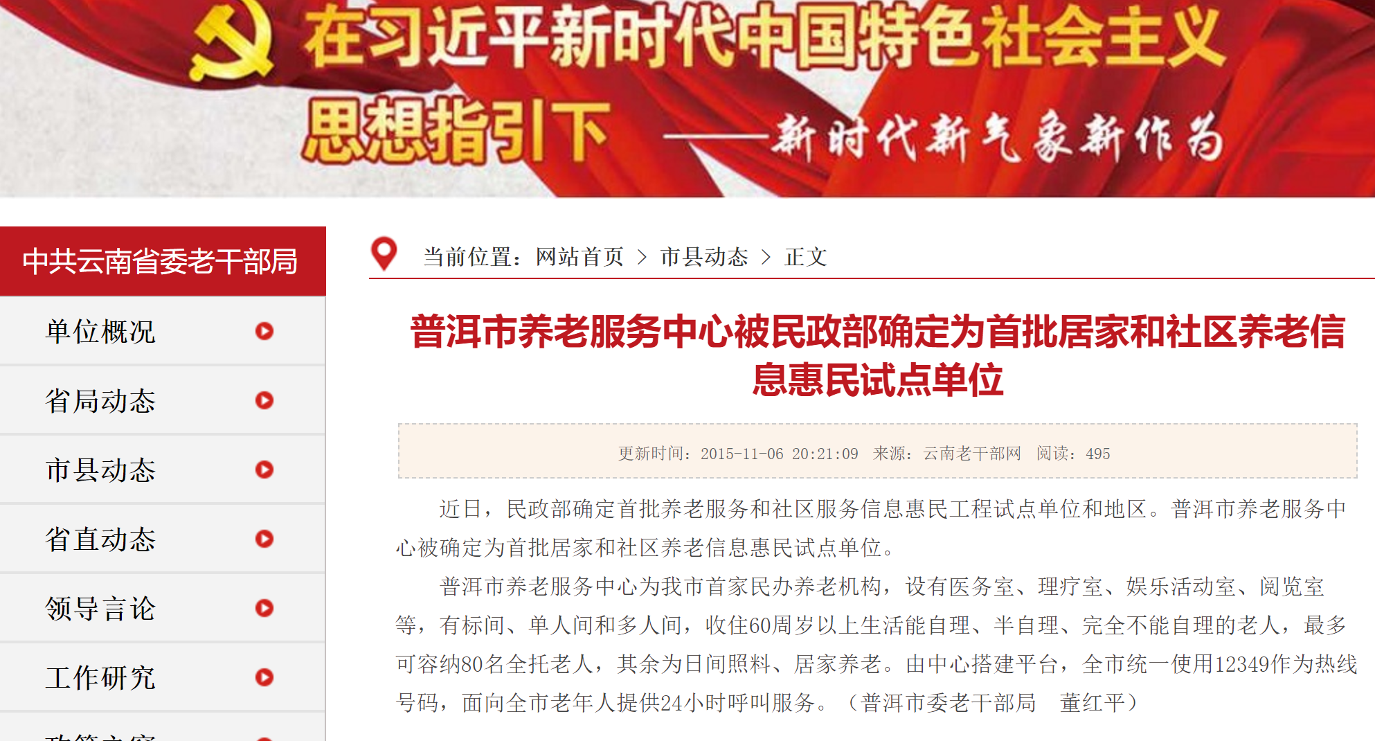 本文標題:云南普洱12349智慧養老平臺